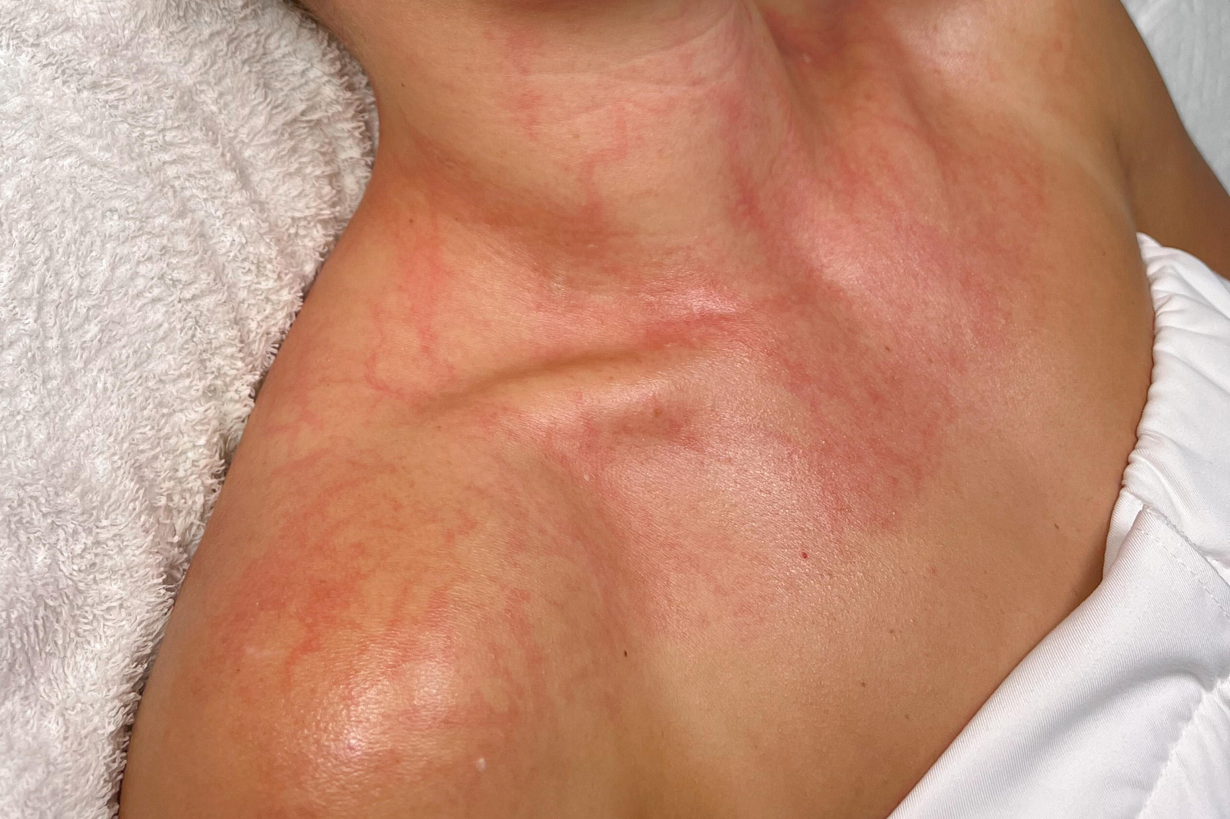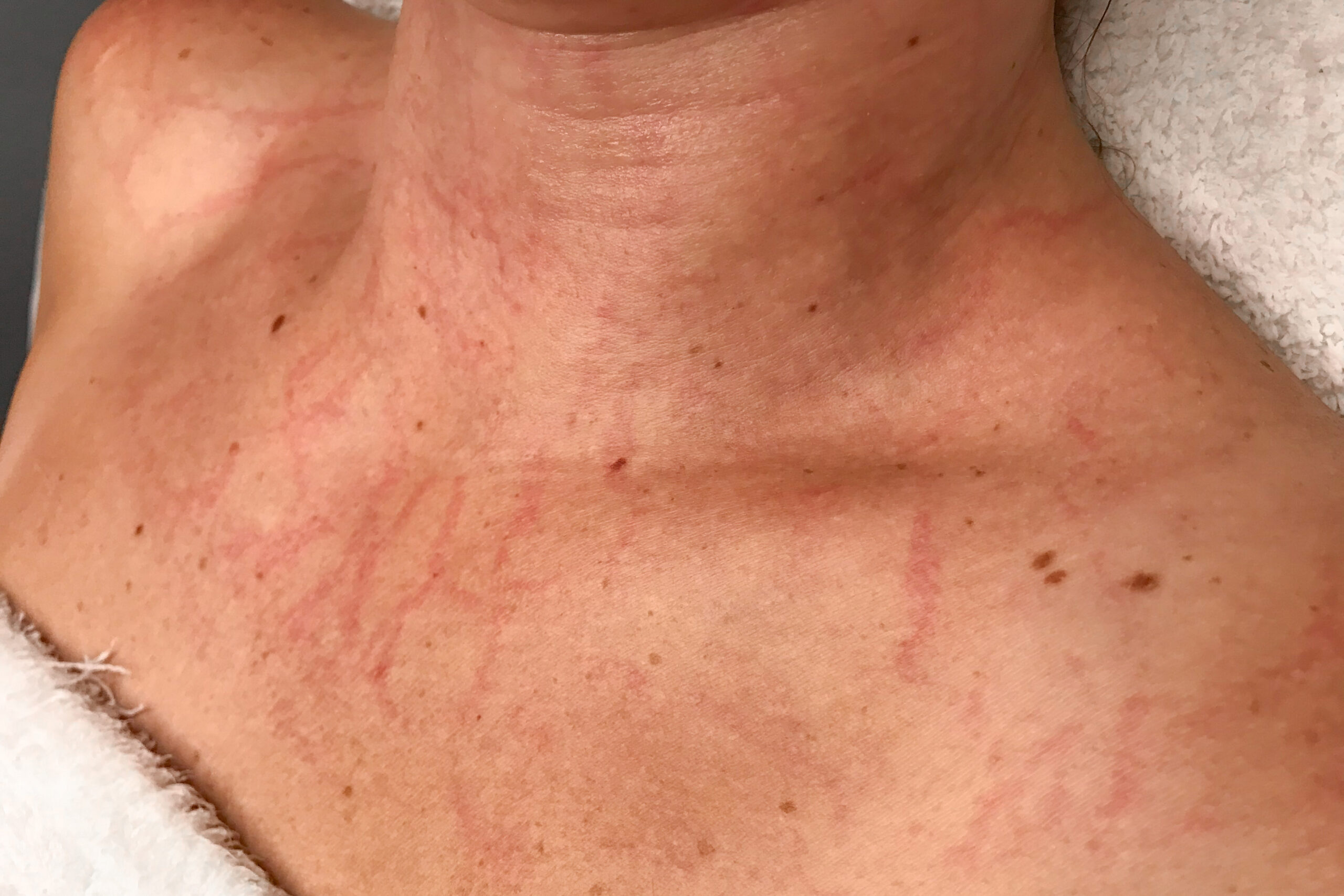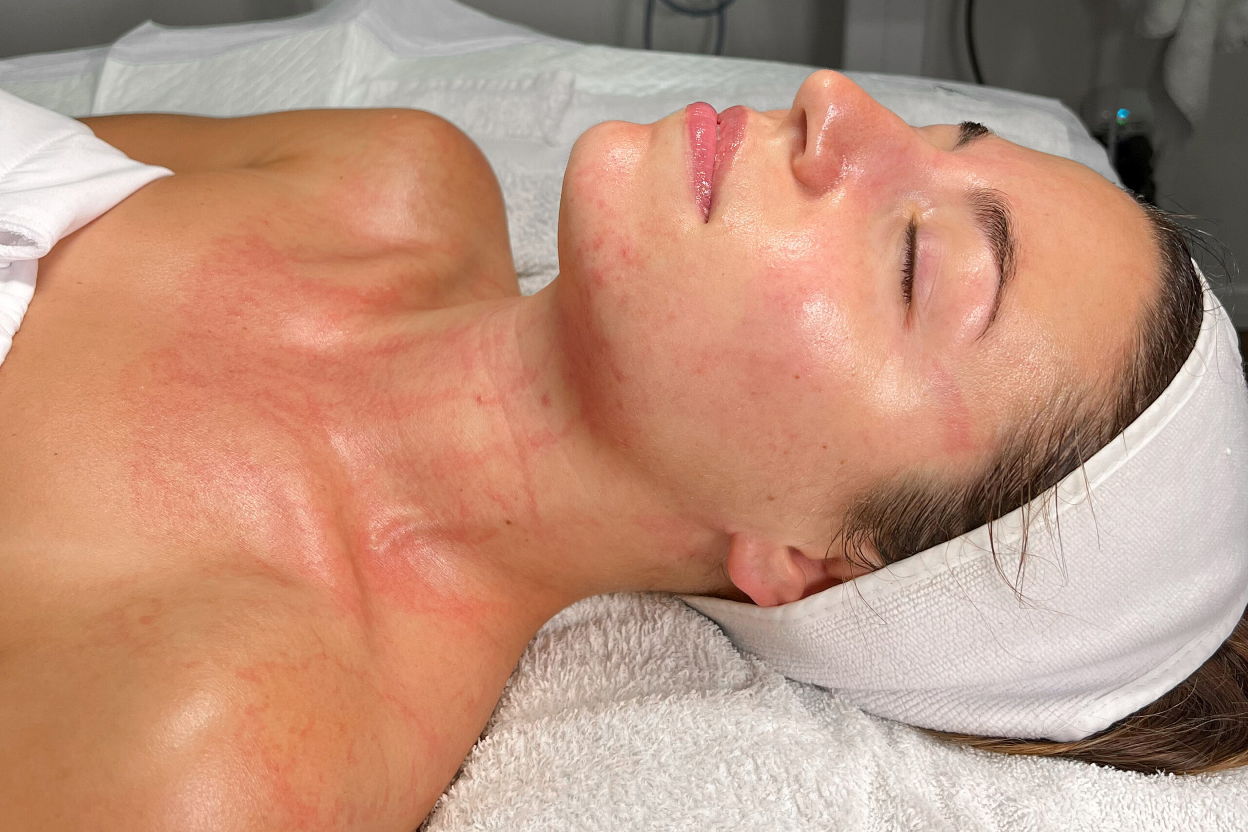 The DMK Advanced Enzyme Therapy activates the circulatory system to dilate blood vessels and bring fresh, oxygenated blood and nutrients to the cells. This is true oxygen therapy. Then it causes a reverse osmosis and “spring cleans” in and around the cell and the capillary loops that feed the cells nutrients. Lymphatic drainage flushes that waste back down into the major lymph ducts at the base of the neck. The result—optimally functioning and healthier skin from the inside out.